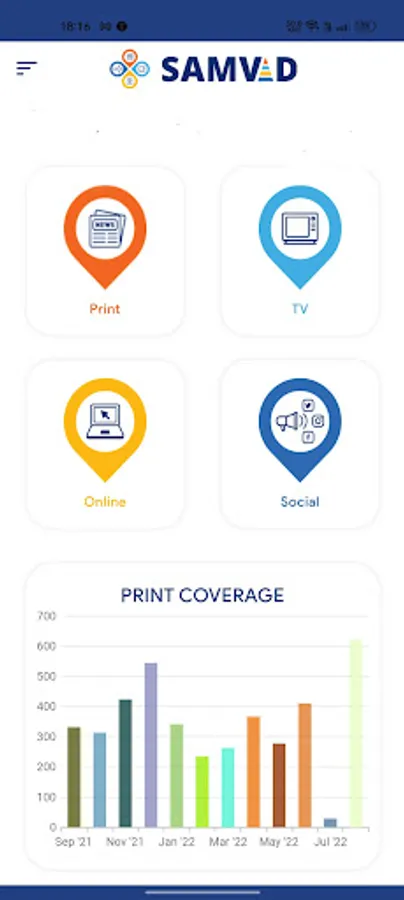SAMVAD Lite is an Integrated Dashboard under an official licence from Intellisense. The platform integrates 4 media (Print, Electronic, Online, and Social) and provides near real-time feedback to stakeholders for quick decision-making.