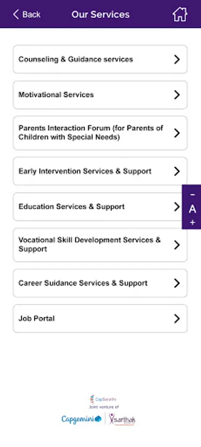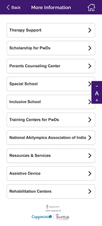 CapSarathi is a one-stop solution for information and services for People with Disabilities (PwD) designed in collaboration with Capgemini and Sarthak Educational Trust. We intend to touch the lives of thousands of “differently abled” people and empower them digitally, economically, and socially with special focus on people in rural areas. The application takes into consideration the accessibility requirements of all disability categories. Initially, it will be available in six Indian languages namely Hindi, English, Tamil, Telugu, Kannada & Bengali.