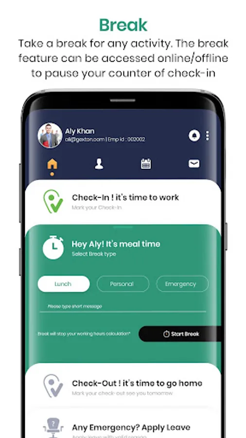 This application allows you to mark your check in , check out, and breaks on daily basis.