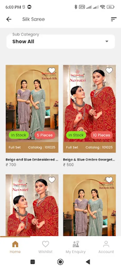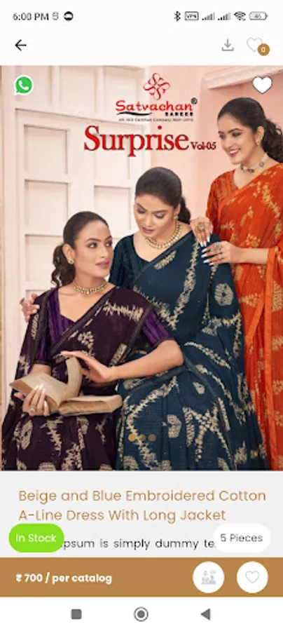 Easy bulk order inquiries: Streamline your wholesale saree shopping experience by submitting bulk order inquiries directly through the app. Our team will assist you promptly and provide personalized support.