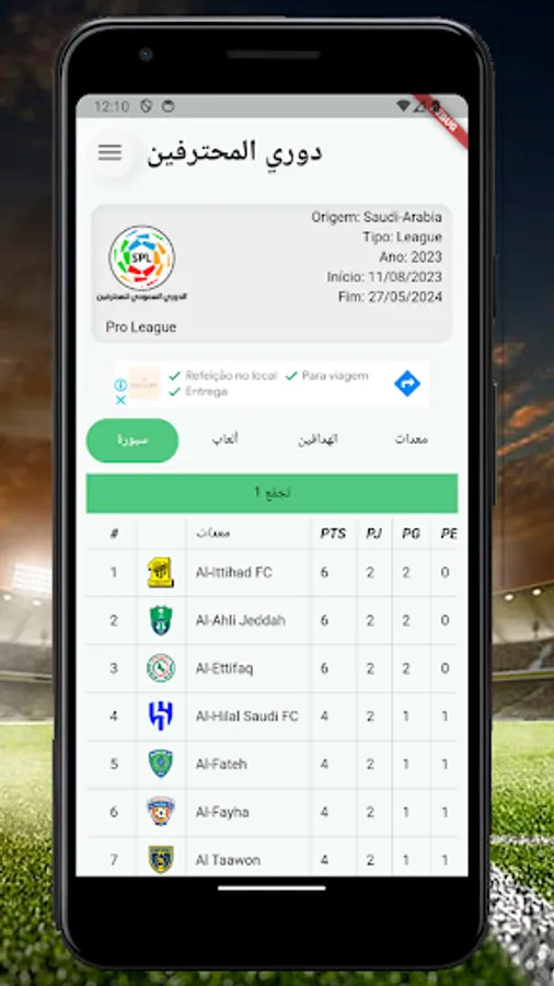 Saudi Professional League application, match pictures, goal videos, match results, match schedule and team and player statistics.