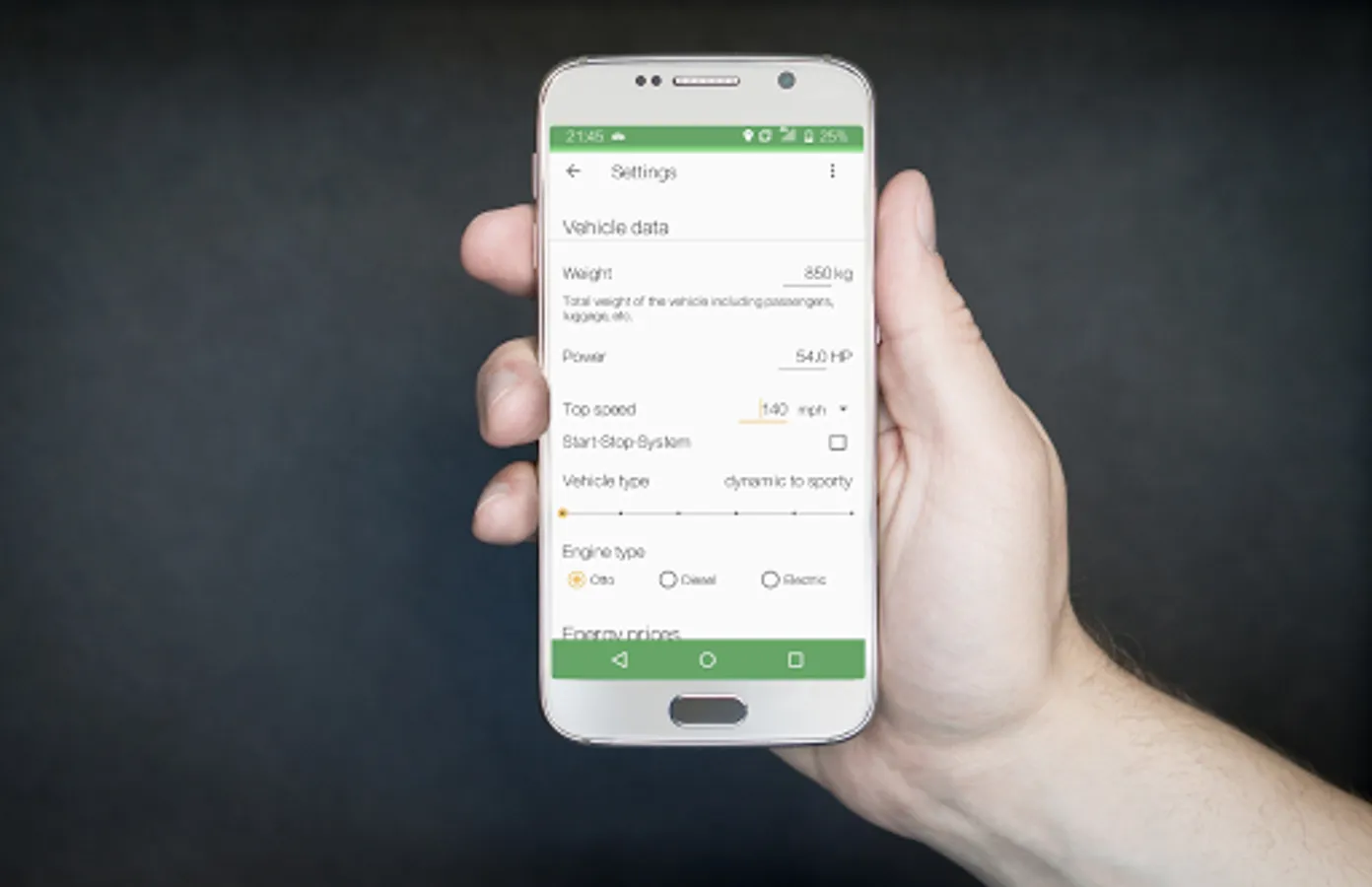 - Energy consumption for acceleration, slope, still, roll and wind resistance