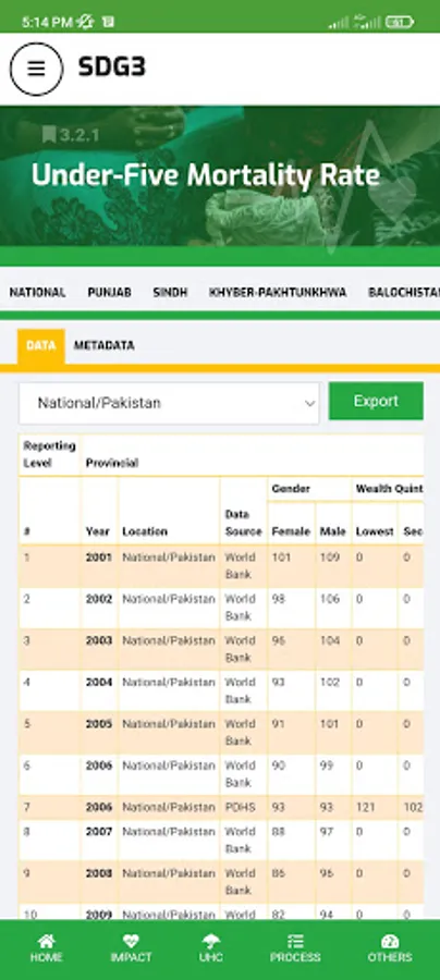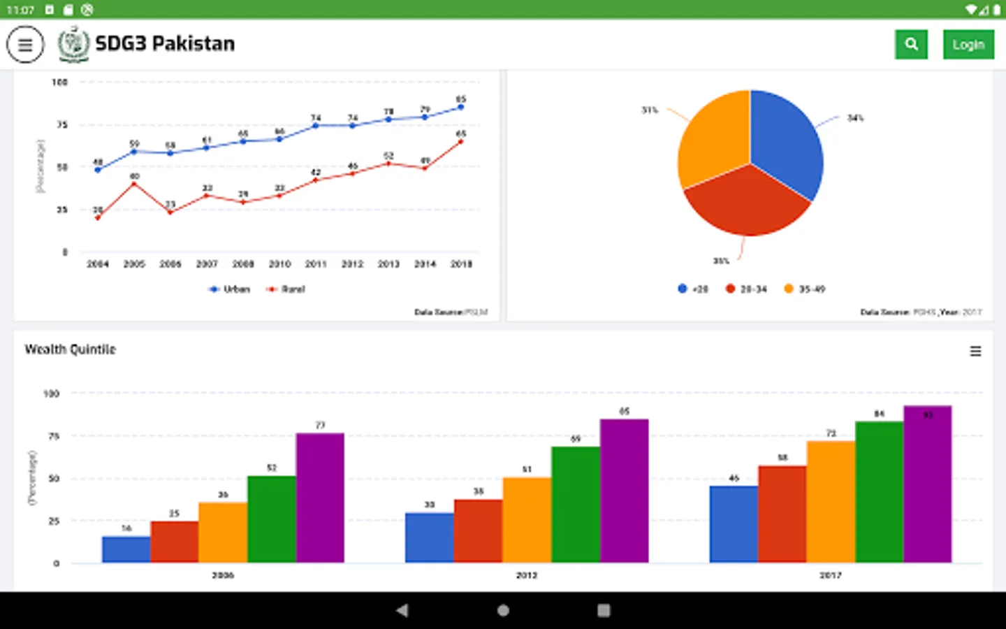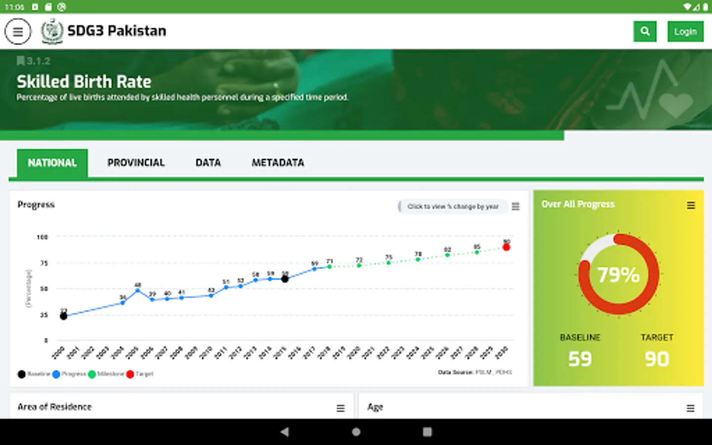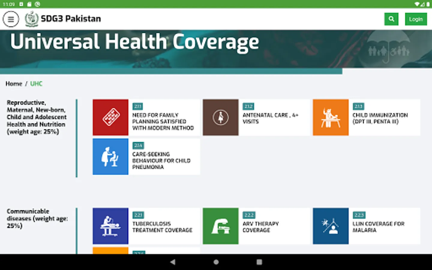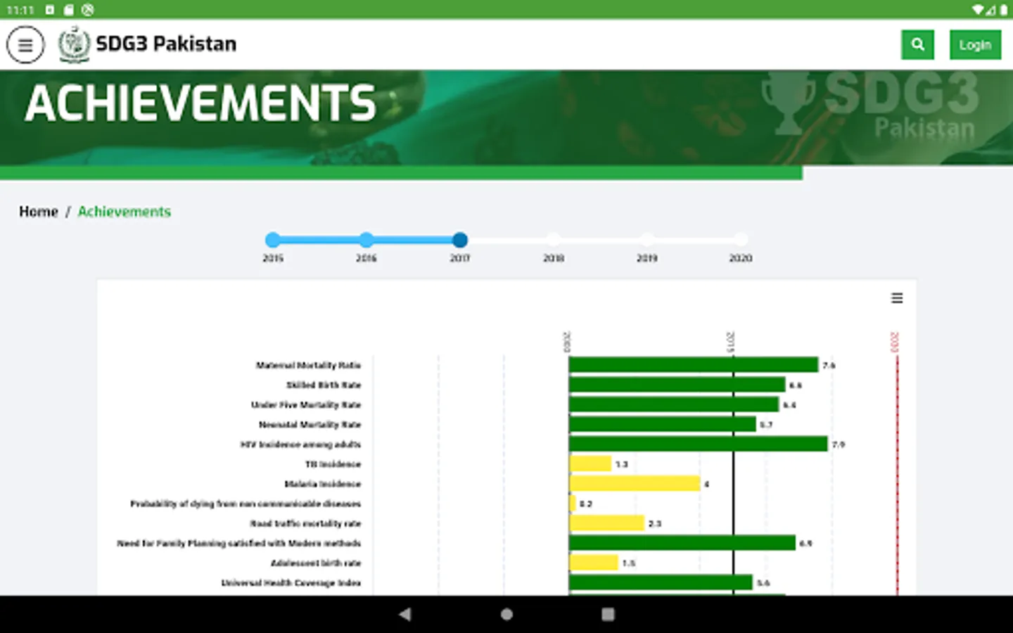 Ministry of National Health Services, Regulation, and Coordination (MoNHSR&C) as well as Provincial Health Departments are working for SDG-3 implementation in Pakistan. Under this, the localization of SDG-3 global targets and indicators for Pakistan was completed and endorsed in 2018 through a multi-stakeholder consultative and consensus building process at the national and the provincial level under the leadership of MoNHSR&C. A National level web-based dashboard and Android App (SDG3 Pakistan) and IOS app were developed and published here to reflect the progress status of the health-related SDGs in Pakistan including localized indicators, baseline, and targets for informed policymaking.