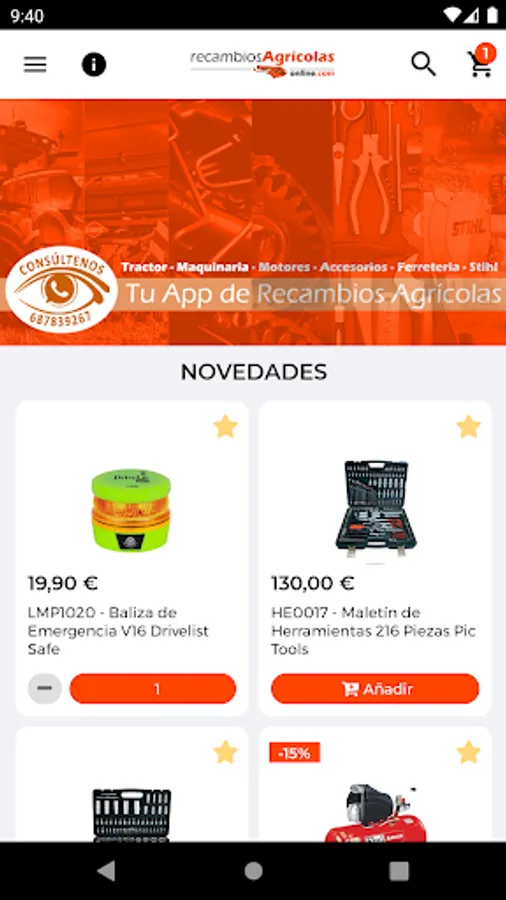 Specialists in spare parts for tractors and agricultural machinery of all brands. Engines mounted on agricultural vehicles. Accessories for workshop equipment, pneumatics, hydraulics, oils, filters, greases, seats, paints, signage... Machines, accessories and spare parts for Stihl brand products. More than 15,000 products in Hardware.