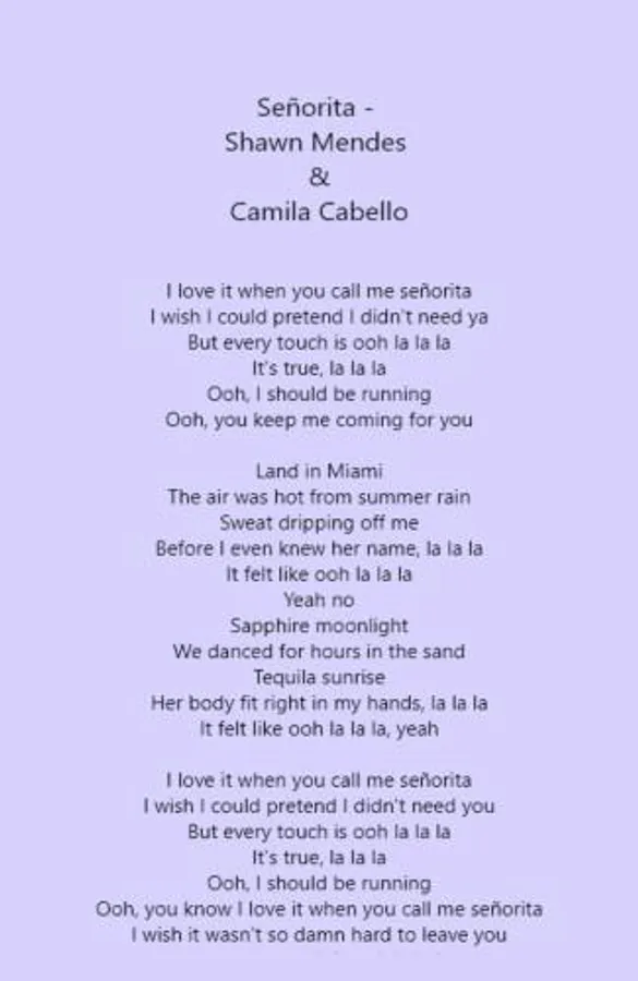 Lyrics App for Señorita - Shawn Mendes, Camila Cabello