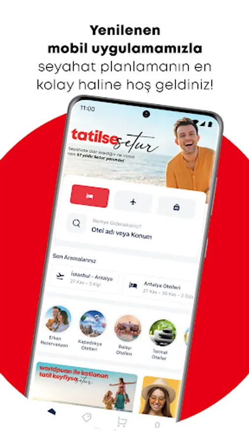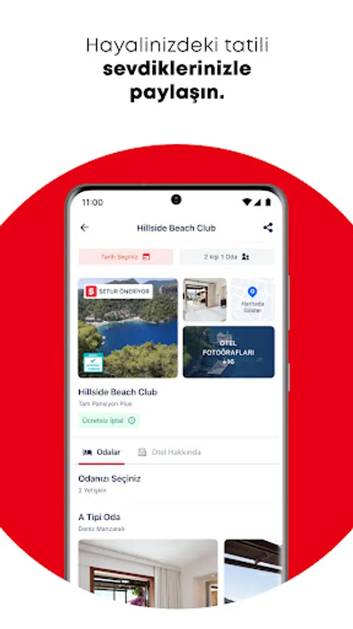 Planning a trip is very easy with the Setur mobile application. In the application, you can reach the hotel options that meet your expectations from the holiday with just a few clicks. For travel planning, you can choose the hotel name or location to find the accommodation that suits your criteria. If you wish, you can also take a look at flight ticket alternatives for transportation.