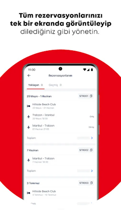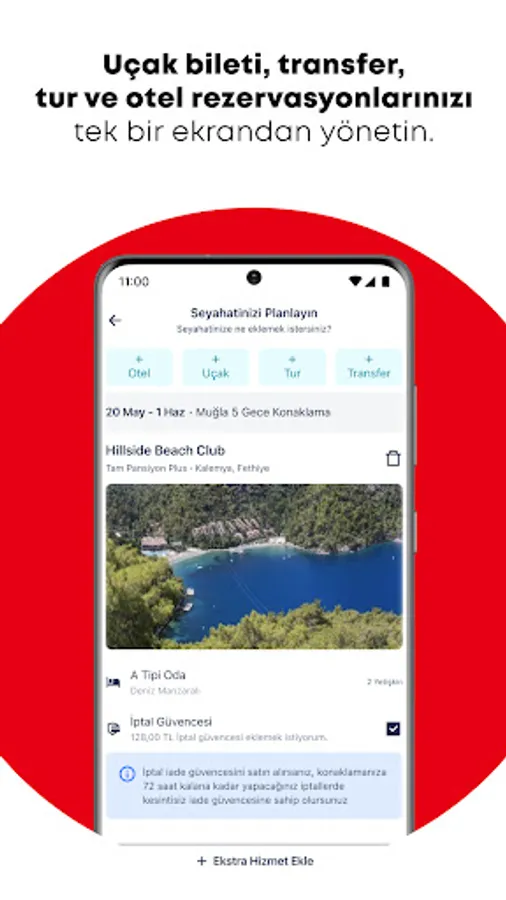 The application offers ease of payment on a single screen when purchasing flight tickets or booking hotels and tours. Thanks to this feature of the platform, it is possible to complete the payment transactions in a short time by entering your card and personal information on a single screen. While planning your holiday, you can see the hotel, tour and flight ticket information you have purchased through the application on a single screen.