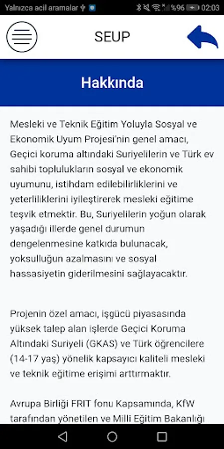 The overall aim of the Social and Economic Adaptation Project through Vocational and Technical Education is to promote the social and economic cohesion, employability and competence of the Syrian and Turkish host communities under temporary protection by improving their vocational education. This will contribute to the balancing of the general situation in the provinces where Syrians live densely, and decrease poverty and social sensitivity.
