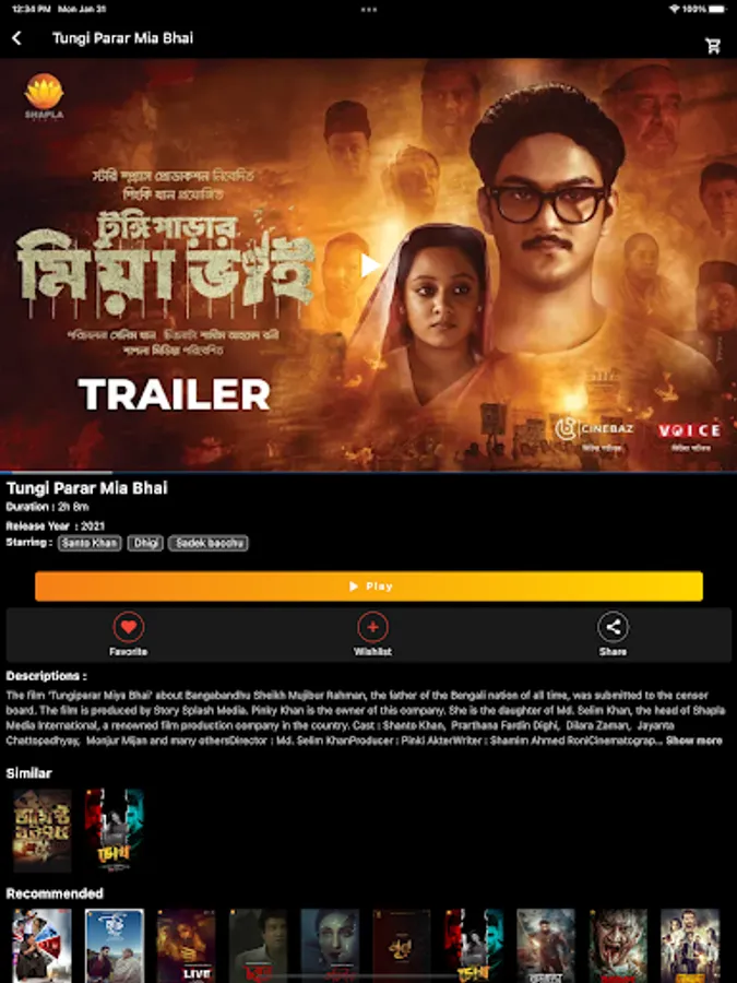 From the first day of launch, you can watch the biographical movie 'Tungi Parar Mia Bhai' completely free in this app.