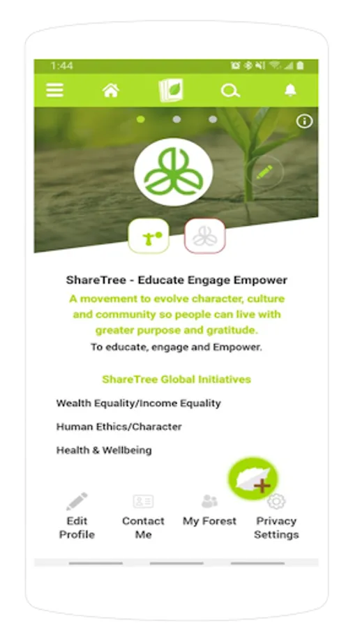 The platform enables participants to establish their own ShareTree profile. A ShareTree profile brings individuals and communities together which enables purposeful connections through character virtues and values, spirituality, growth mindsets, positive psychology and science.