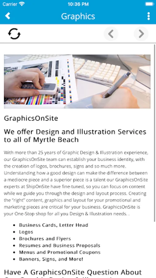 In addition to our pack and ship service, we are also Myrtle Beach's premier copy, graphic design-illustration, print and document services center. Large or small, black and white or color; if it can be printed, ShipOnSite's PrintOnSite and GraphicsOnSite team can handle it!