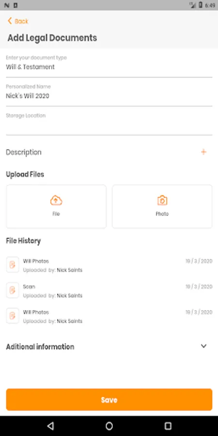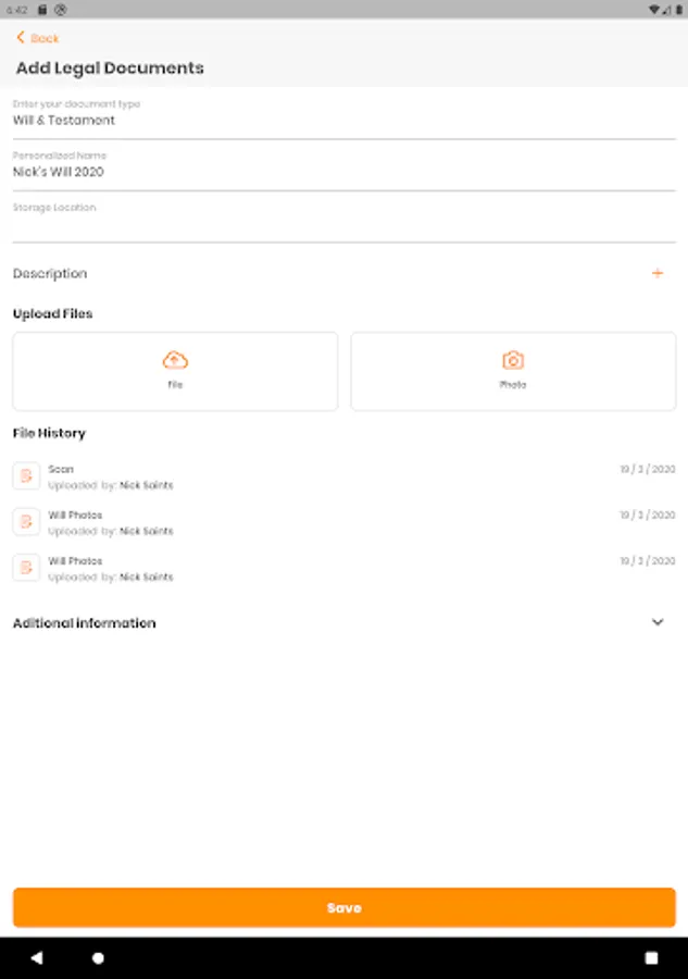 Use your smartphone’s camera to snap photos of an insurance policy, tax return, student loan or a property. You can add as much or as little detail as you want, as long as you are happy with it!