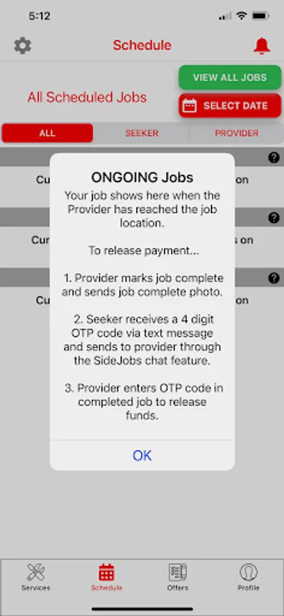 As a consumer looking to have something taken care of, you can post about a job you need to get done and tailor the date and time for your availability. It is free to sign up and no subscription. Small fees apply upon payment to the Provider. Providers can browse through the posted jobs and offer their best price for your request. Then you choose which offer to take and accept that offer. You can even counter offer the price! It’s that easy. Here’s an example… Let’s say you have a day with a huge to-do list and not enough time. You have to wash the car, get the dog groomed, get your hair cut, and mow the yard before your significant other gets home. The problem is that you really want to watch that sports game, go hang out with a friend, or get lost in a video game instead. With SideJobs, you can schedule each one of these jobs separately and have all the work done on that day or before, allowing you to relax and save hours of your precious time. Send them the 4-digit verification code, pay them cashlessly, and you’re done!