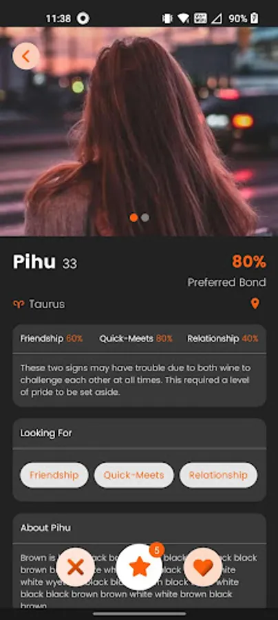 These features allow you to filter your categories to what you want. Based on each individual’s zodiac/ astrology sign and determines the likelihood of that given situation’s percentage of success. We allow you to match with anyone no matter the percentage, we just guide you towards high compatibility. Your orientation or preference is a top priority as well as we allow you to set these parameters to your liking when it comes to what your seeking interest is or self orientation.