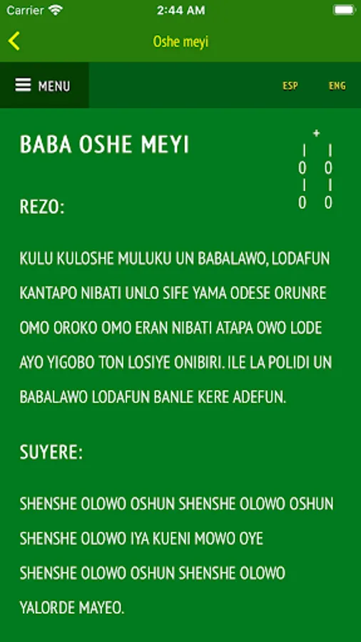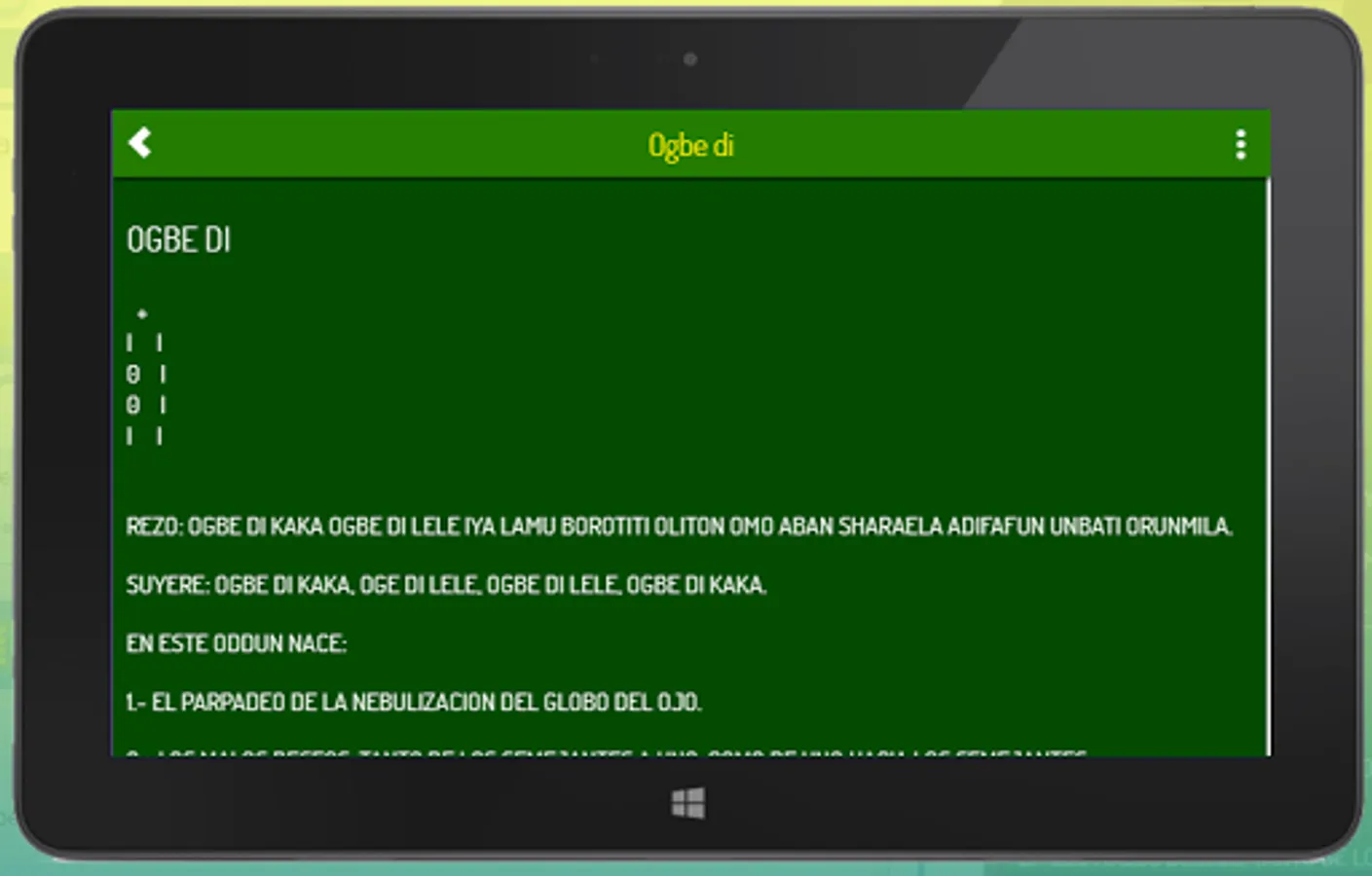 The Ifá encyclopedia. The word of Orula and the 256 signs or oddus of the Oracle of Ifá. The signs of Ifá of the Rule of Osha-Ifa. Births in the sign, description, says Ifá, ebboses, ewes, eshus of the sign, prayers and suyeres, proverbs and patakies. The divination system used by babalawos.