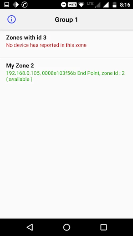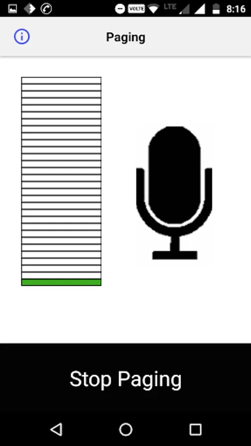 The App shows which Zones are in use and displays real time status information on the components of the Paging System.