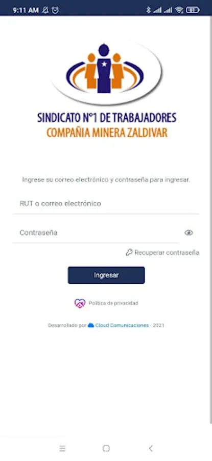 Internal communications application for the members of the Union N ° 1 Minera Zaldívar