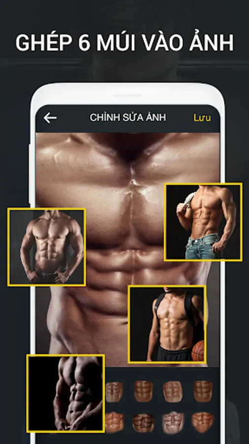 Photo editing 6 pack - Collage photos 6 packs, tattoos, chest transplant on photos, help you become smaller, more attractive, more fun in your photos.