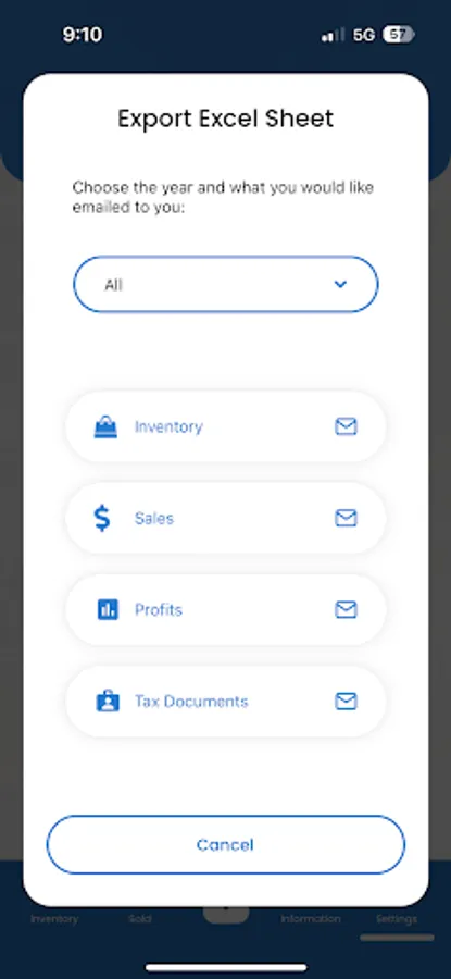 A helpful list to keep your inventory up-to-date. In the app or emailed to you in a familiar excel sheet format.