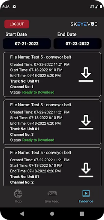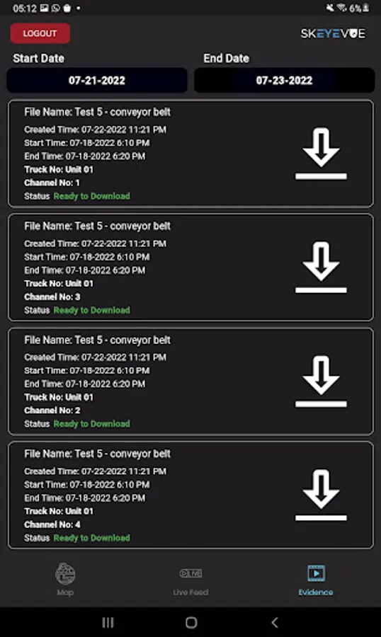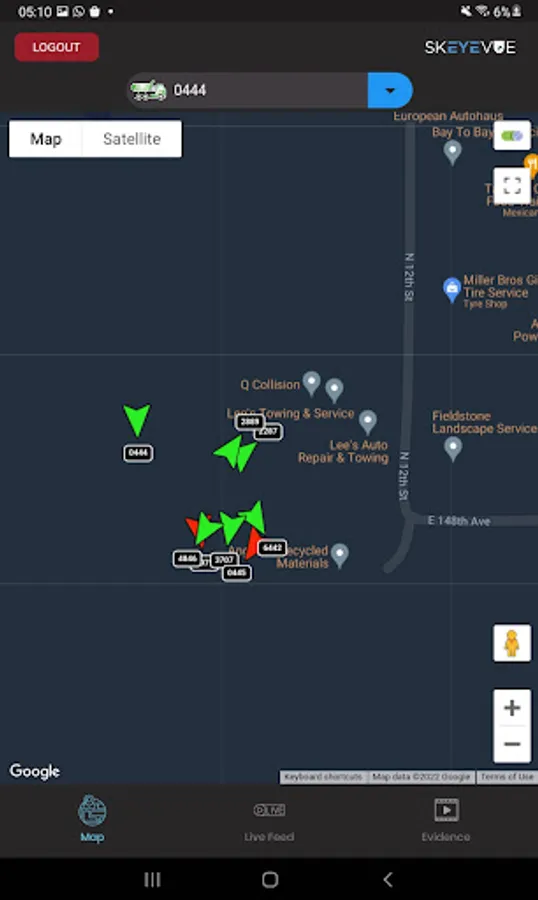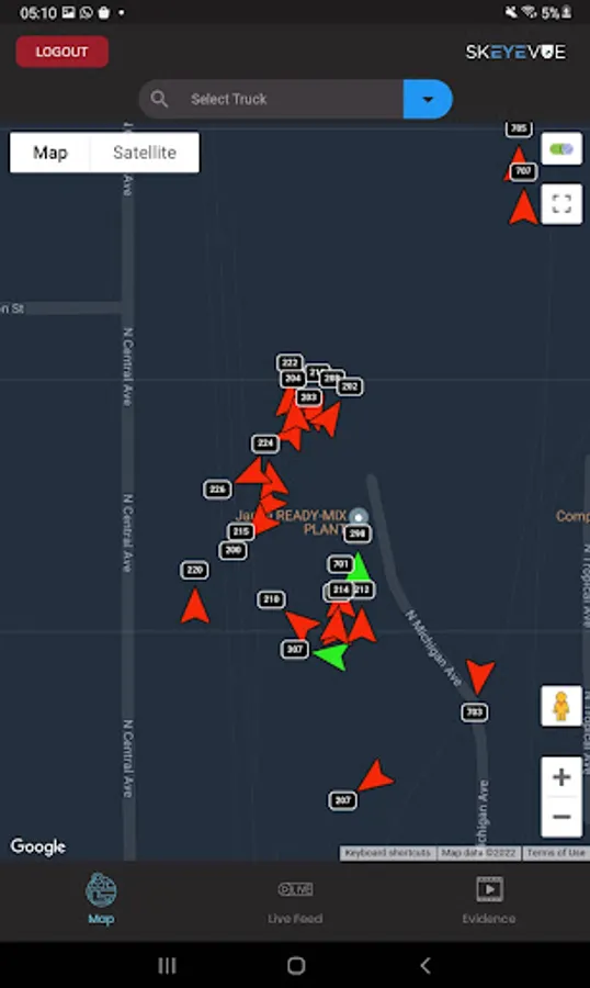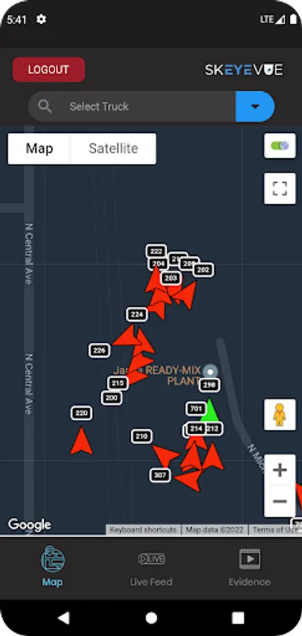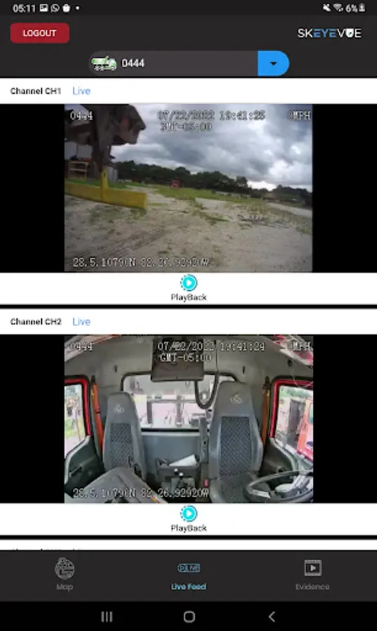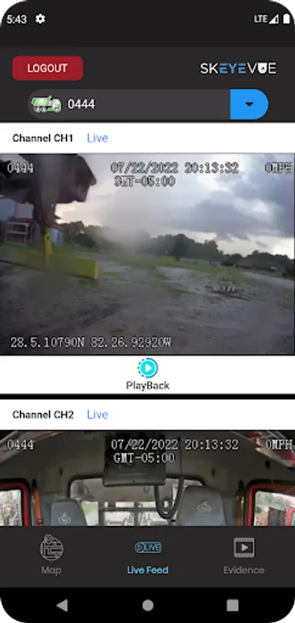 skEYEvue Mobile is a full featured App featuring live video of all installed vehicle cameras using the skEYEvue system. In addition, evidence video requests and playback are available within the app along full GPS tracking map.