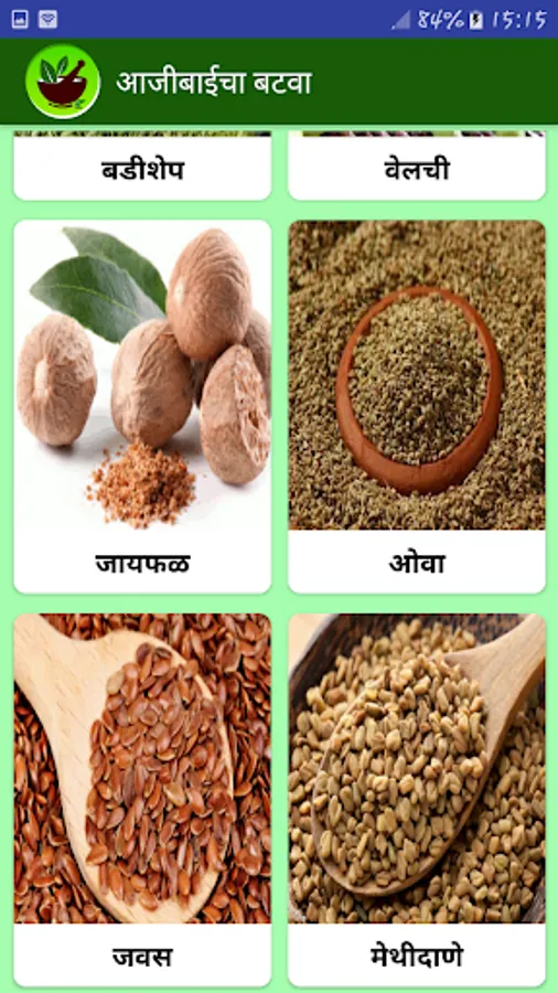 आधुनिक विज्ञानाने कितीही प्रगती केली असली तरीही, त्याला न जुमानता लोकांना सातत्याने खूप साऱ्या आजारांचा सामना करावा लागतो. सहसा हा आजार वातावरणातील बदलामुळे होतो. हिवाळ्यात तर तो अगदी चटकन पसरतो. या दिवसात काही नैसर्गिक घरगुती पदार्थ वापरून आपण त्यावर नियंत्रण मिळवु शकतो. या सर्व गरजांचा विचार करता आजीबाईंच्या बटवा हा अँप खास तुमच्यासाठी आणला आहे. या मध्ये सर्व छोट्या रोगावरचे घरगुती उपाय दिले आहेत. या अँप मधून गरम मसाल्याचे फायदे, कडधान्यां पासून होणारे फायदे, फळां पासून होणारे फायदे, आजारांवर उपचार या सर्वांचा समावेश या अँप मध्ये करण्यात आला आहे.