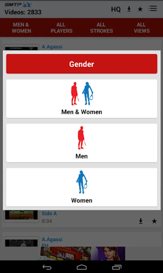 Example: Show all videos of 'Men Players' hitting 'Forehands' from the ‘Back Camera Angle’