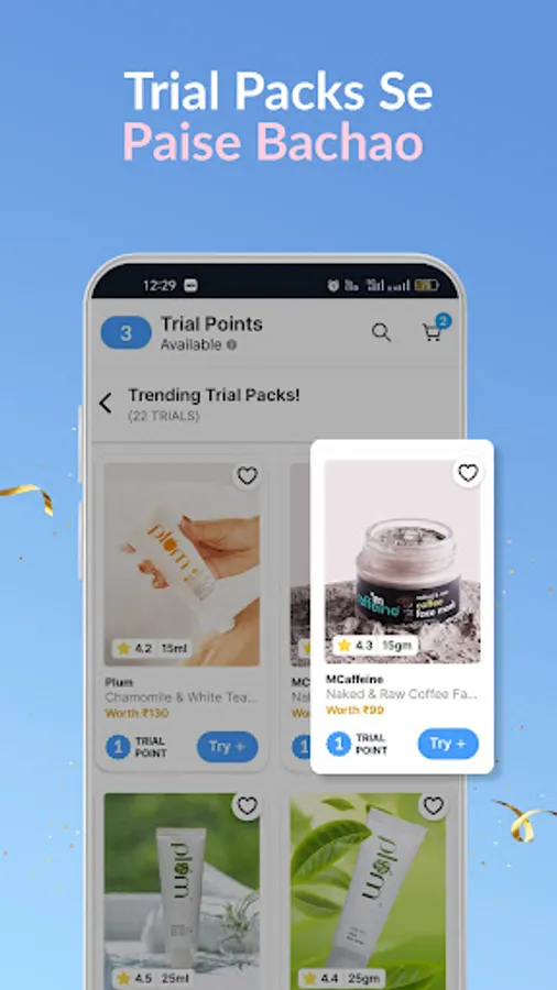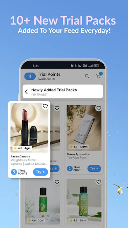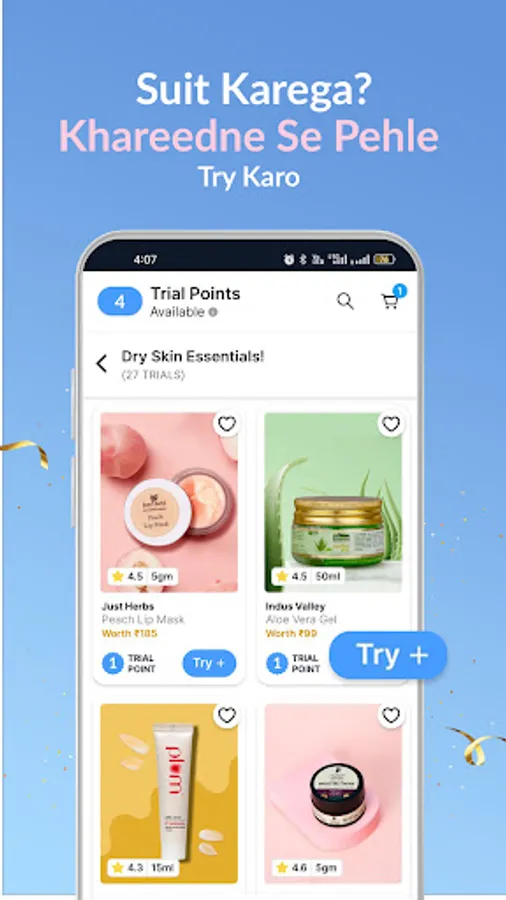 The Smytten app is your first step into the world of trial packs and discovering the best brands. Divided into two sections, the app lets you explore the curated Trial feed and place a trial order using your six trial points. Try before you buy! Once you know what you love, browse the Shop feed and get freebies!