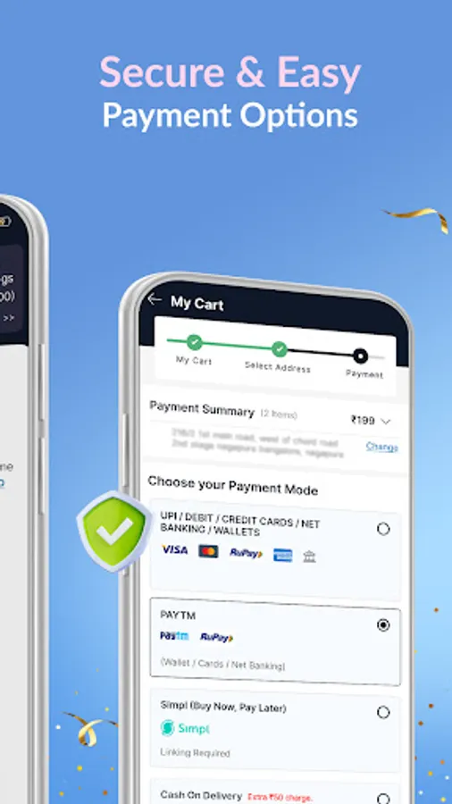 We also offer cash on delivery! You can also pay using Paytm, UPI, Credit Cards, Debit Cards, Net banking, Amazon Pay, Simpl and MobiKwik through easy, fast, and secure checkout options.