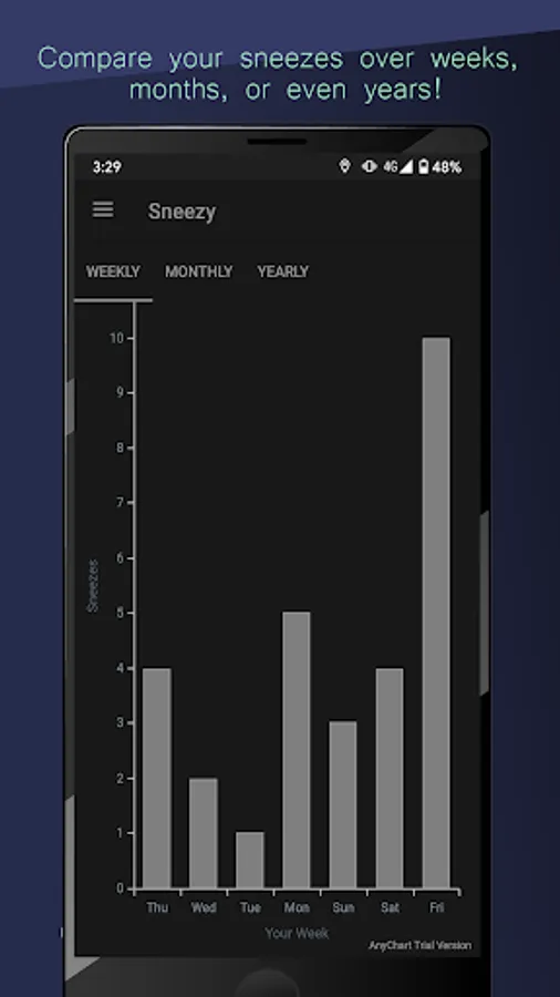 - Graphs and other statistics for your sneezing habits