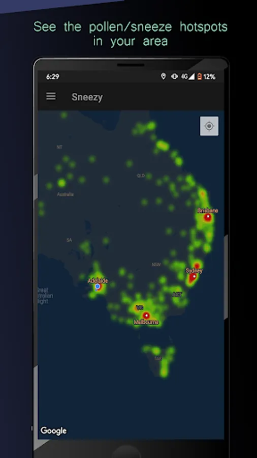 - Location based technology to see potential pollen hot spots in your area