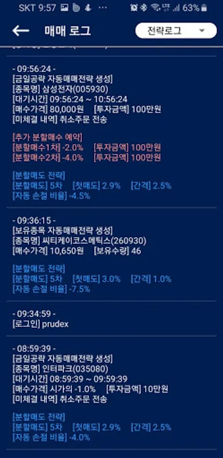 4. Automatic liquidation function when re-entering the sub-division selling price during installment sales (Example 5, when selling up to the third installment selling during the 5th installment sale, but not reaching the fourth installment selling price and falling back to the third installment selling price, All of them are sold at the market price without delay.)