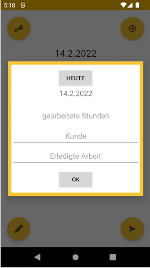 Enter working time, customer and work done and send Excel file by mail