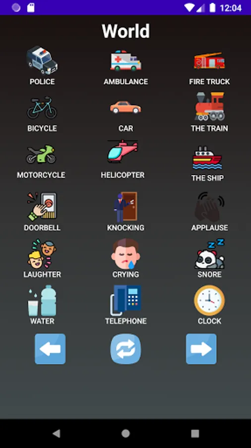 - animal sounds, music instruments, sounds of weapons and guns, world sound effects (police car, ambulance, bells etc.);