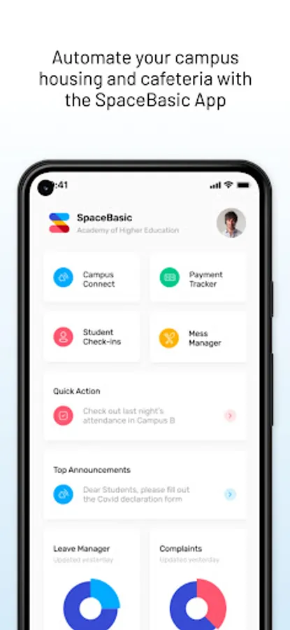 SpaceBasic empowers colleges and universities drive student success with a connected campus experience. Whether it's campus housing, integrated payments or digital cafeteria, students easily navigate the university experience while faculty and staff have access to data-driven insights to work more effectively everyday!
