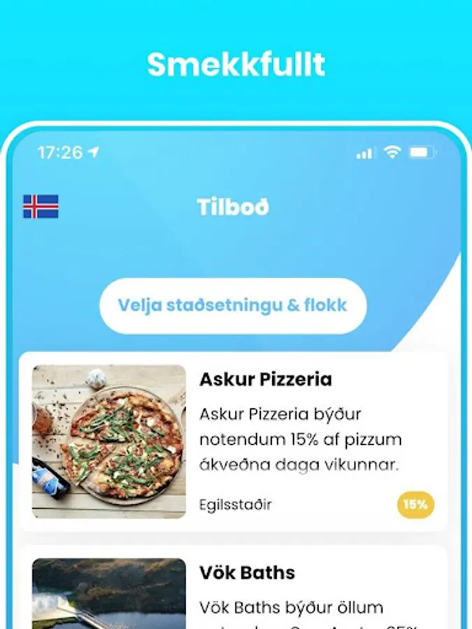 Austurland includes breathtaking fjords, mountains, lakes, trails, and endless opportunities. If you are living, traveling or simply road-tripping through East Iceland, this is the app you need. The deals and offers are updated constantly, so be sure to check it often. Plus: it’s free! Download the app and start getting all the benefits.