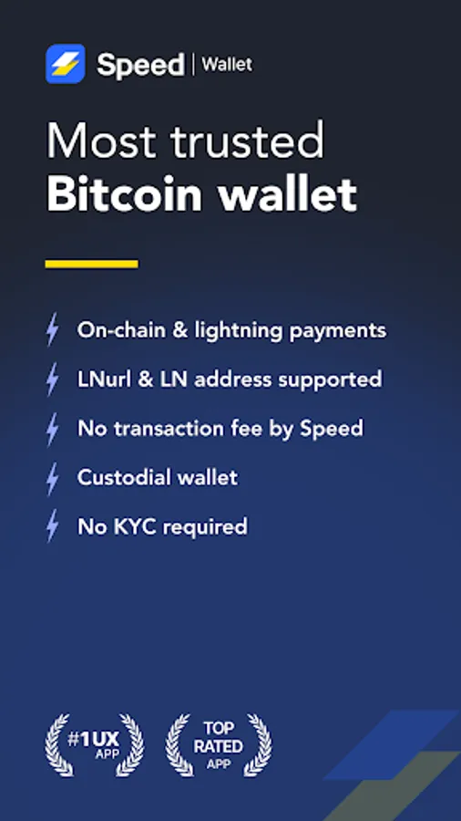 As a custodial wallet, Speed Bitcoin Wallet enables you to securely send and receive Bitcoin via both the on-chain and Lightning Network. Put your Bitcoin to work with ease using Speed Bitcoin Wallet for Android. Speed is the most secure crypto wallet for you to hold your Bitcoin and spend easily for everyday services, without worrying about fees.