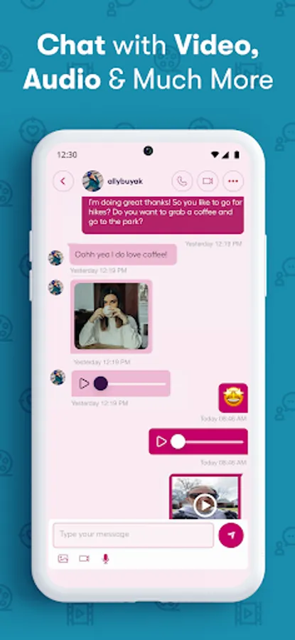 • Get to know people before meeting IRL through text, video, and audio messages.