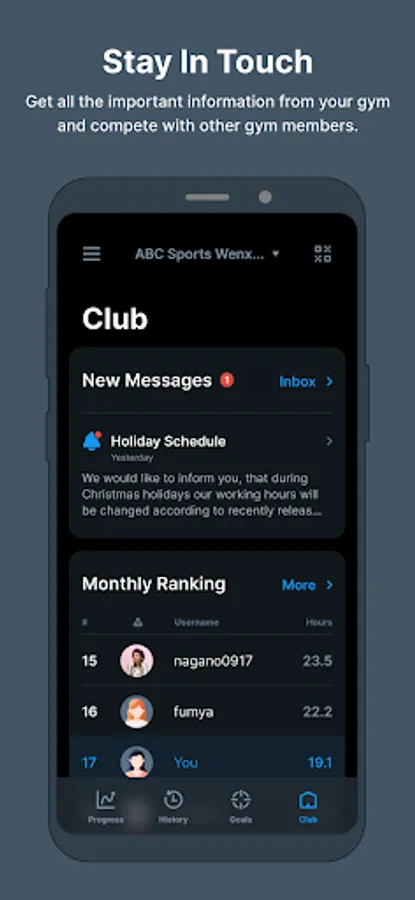 5. Receive the notification of the club and view the workout ranking at the club