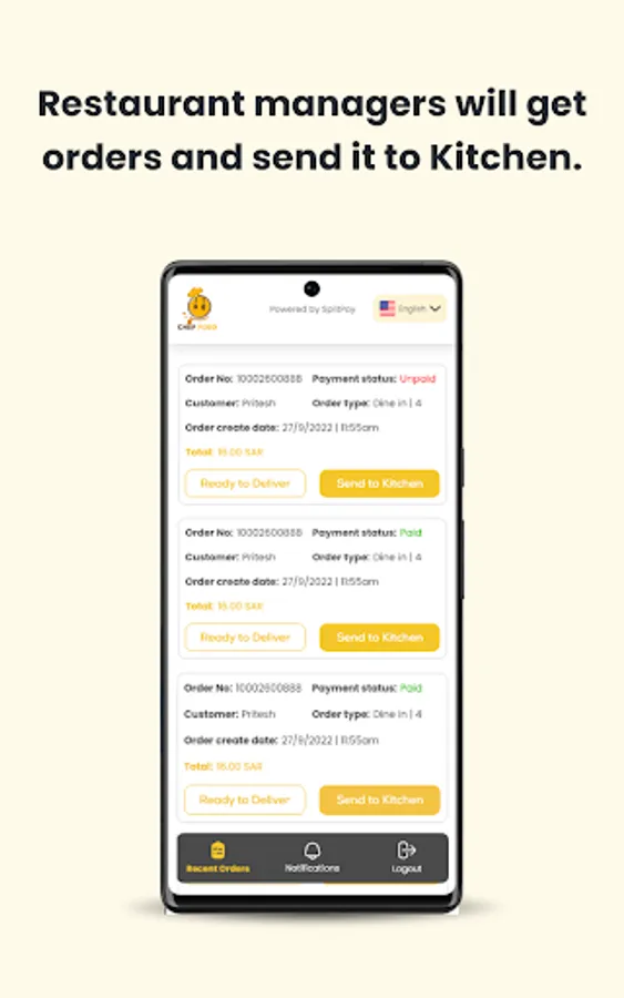 Internal restaurant app for the cashier to print the order to relevant kitchen printers.