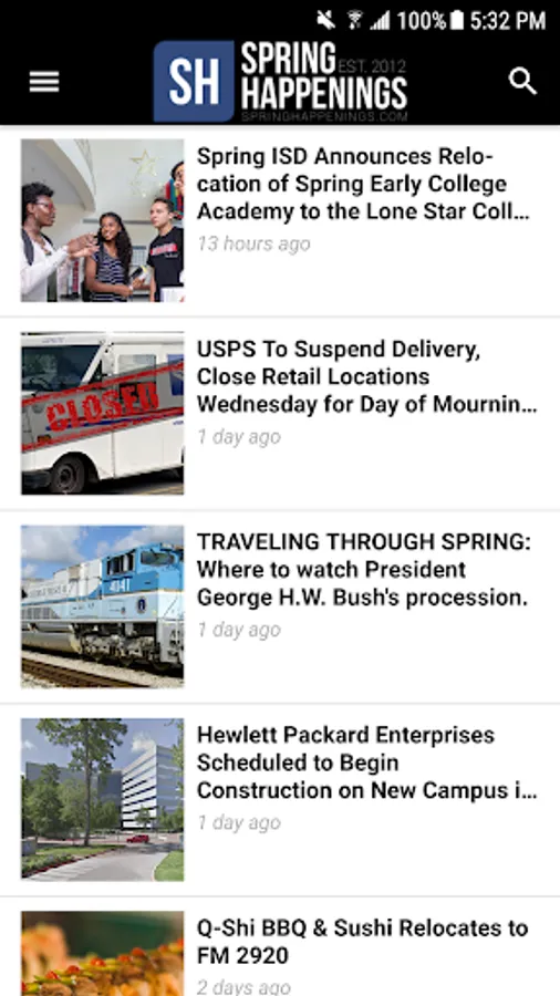 This is the official mobile application of Spring Happenings and SpringHappenings.com, a division of Spring Media LLC in Spring, Texas. The app offers news, weather, traffic and community information. You can count on us to provide you with up-to-the-minute factual information regarding news that is relevant to the Spring community. You will have immediate access to the latest articles, photos, and videos from the Spring Happenings newsroom, all in one convenient application.