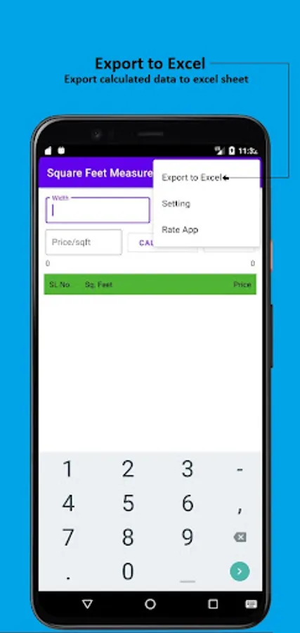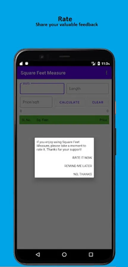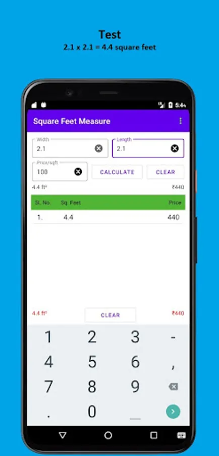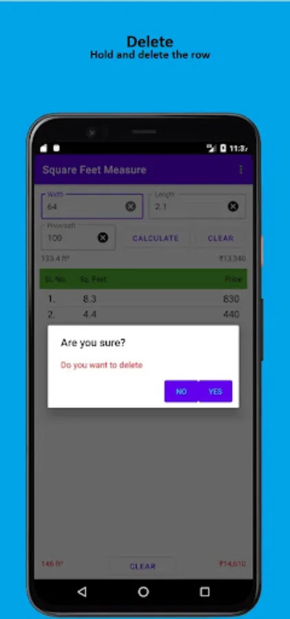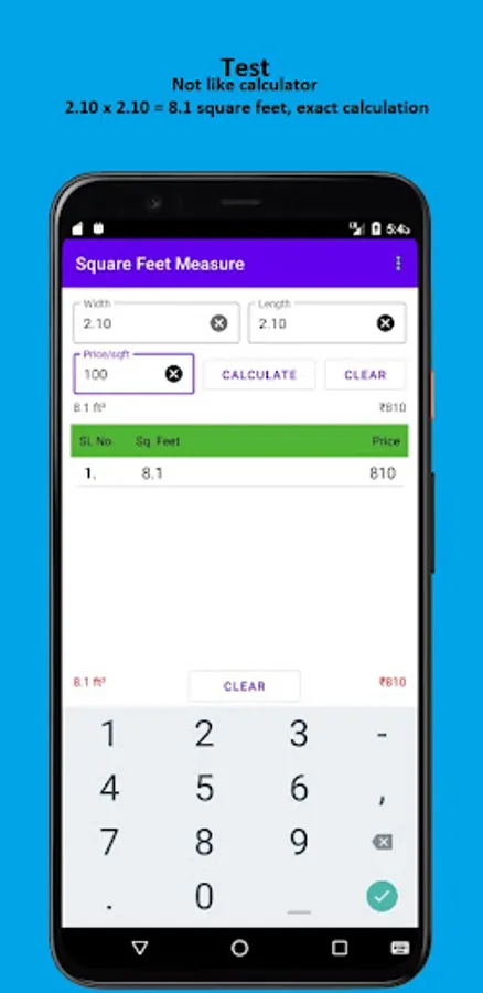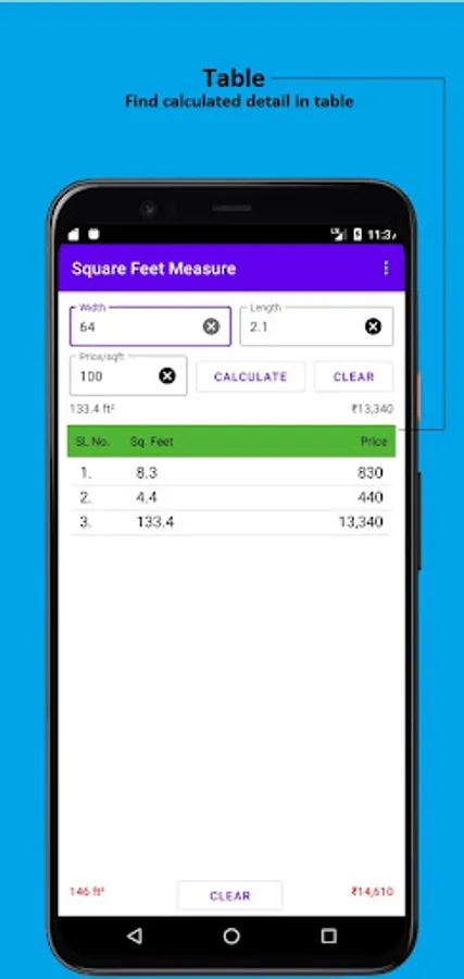 And the app also has a feature where it lists up all the calculation of square feet and gives you total of the entire list i.e, total amount and square feet, at the bottom of the list.