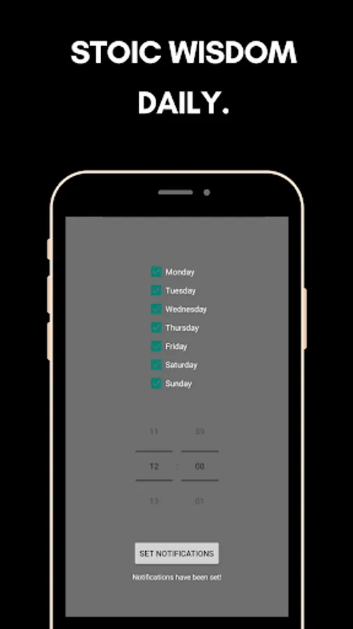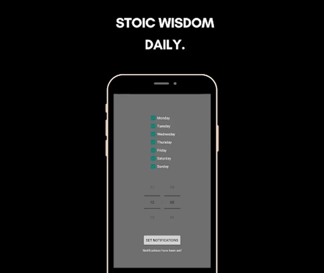 Personalized Notifications: Tailor your Stoic experience by selecting specific days and time to receive notifications. Choose the moments that best suit your schedule and create a habit of mindfulness throughout the day.
