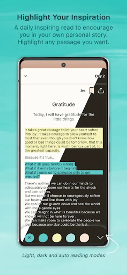 ○ Easily browse your highlights, journal entries, saved messages and more.