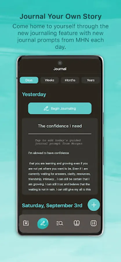 ○ Journalling section and daily journal prompt from MHN.