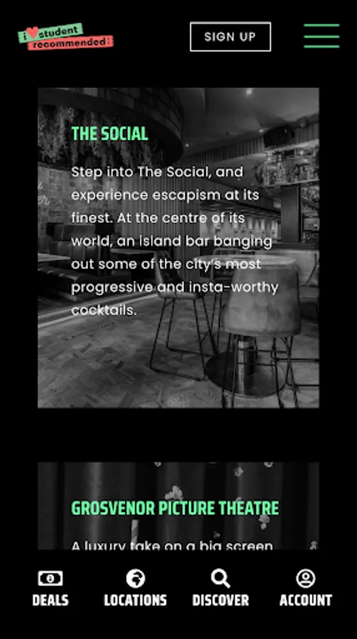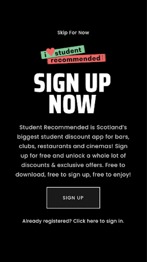 Student Recommended is Scotland’s biggest student discount app for bars, clubs, restaurants and cinemas! Sign up for free and unlock a whole lot of discounts & exclusive offers. Free to download, free to sign up, free to enjoy!
