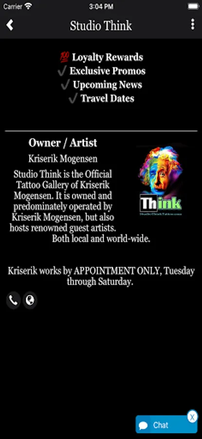 Studio Think is the Official Tattoo Gallery of Kriserik Mogensen. This app serves as gratitude and appreciation, granting all loyal Studio Think clients, access to exclusive discounts, promotions, rewards and the newest news / information: