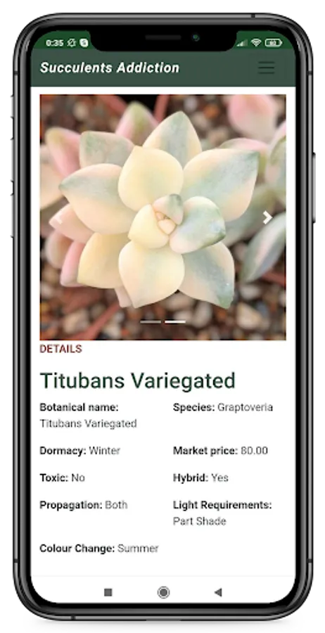Collections grow quickly and soon it becomes very difficult to remember what succulents you have, when last treated for bugs, or watered. This app will keep track of the names of your plants, where you purchased them from or sold them to, and events like potting, fertilizing, and treating for bugs. You can keep a photographic history of each plant, using the camera in your device or a photo taken elsewhere.