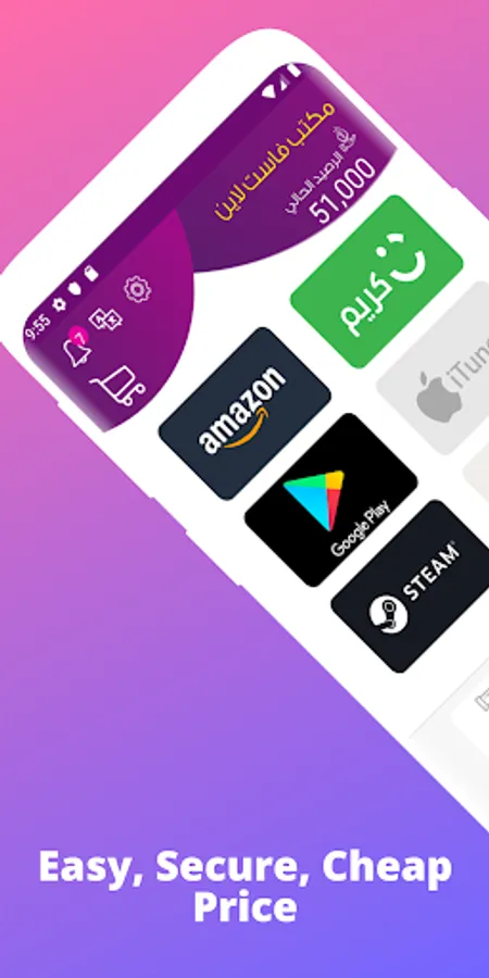 Sumer Cash application, the secure and easy to use electronic wallet, as it contains all categories of electronic cards, mobile recharge cards, etc. It contains stores to sell products from their main sources (mobile phones + computers + accessories and others).