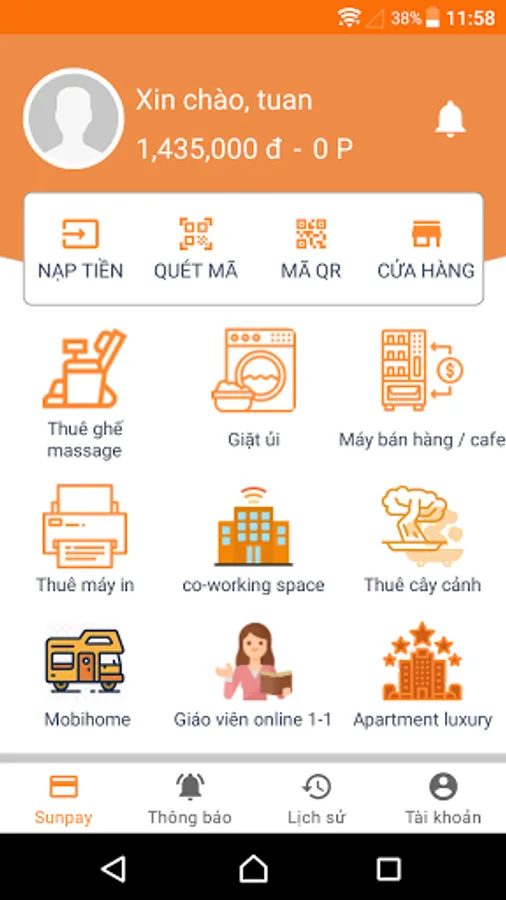 SunPay là một mô hình dựa trên nền tảng phát triển chung, ứng dụng chia sẻ thiết bị công nghệ, kết nối giữa bên cho thuê và người đi thuê, quản lý, sử dụng thanh toán các dịch vụ dùng chung như giặt/sấy, chia sẻ ghế massage (thuê ghế cao cấp chỉ 16.000 đồng mỗi ngày), thuê máy bán hàng tự động, máy cafe, máy in, thuê cây cảnh, thuê giáo viên dạy online, thuê xe mobihome (nhà di động), thuê khách sạn... nhanh chóng và dễ dàng hơn. Khi khách hàng có nhu cầu chỉ cần vào app, đăng ký sử dụng dịch vụ và thanh toán, dễ dàng, tiện lợi, giúp giải quyết rào cản bất cập truyền thống.