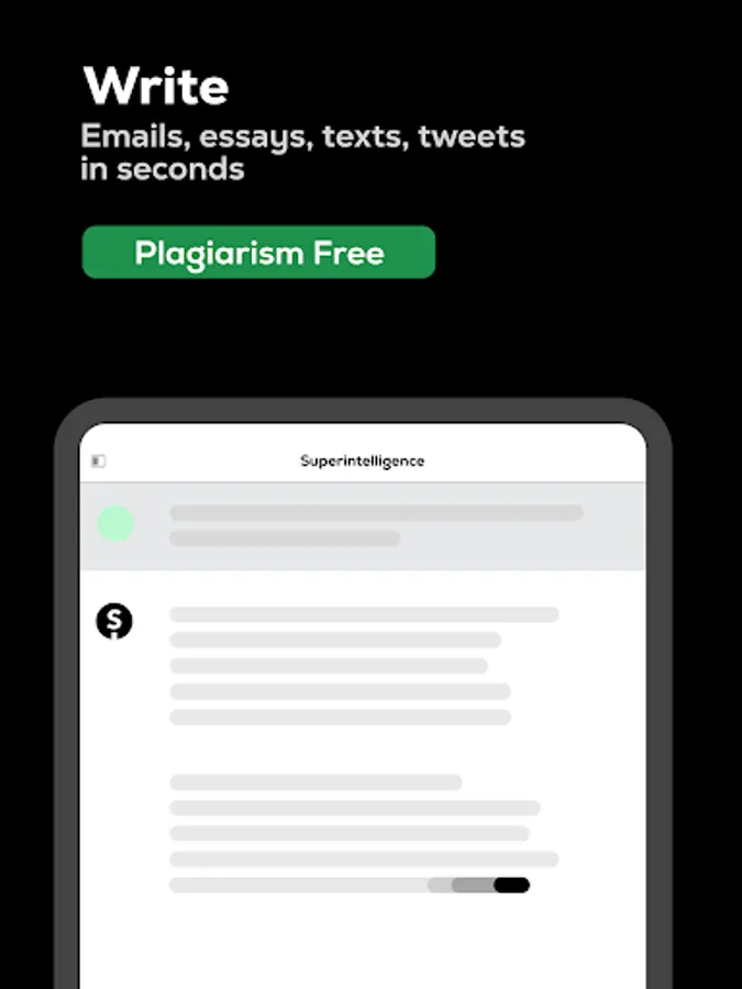 Superintelligence is the ultimate writing assistant. It can help you write original and plagiarism-free emails, essays, blogs, texts, and tweets at lightning speed. It uses GPT-3 technology, which has been trained on a massive dataset of text, allowing it to understand and respond to a wide range of writing prompts and styles. It can assist you with grammar, punctuation, and sentence structure, making sure your writing is clear and error-free. Superintelligence can also help you with proofreading, so you can be confident that your writing is polished and ready for submission.